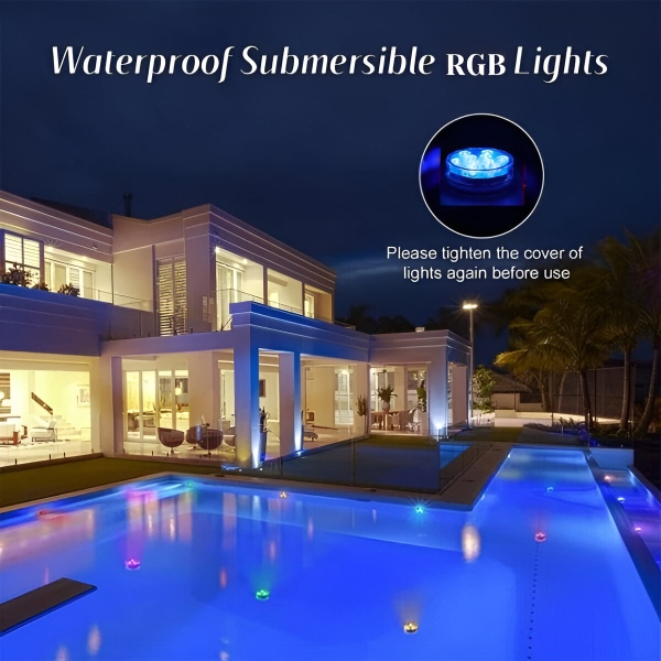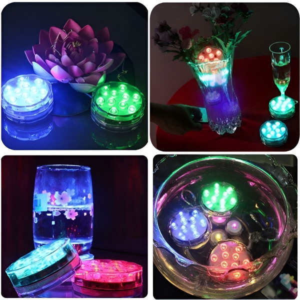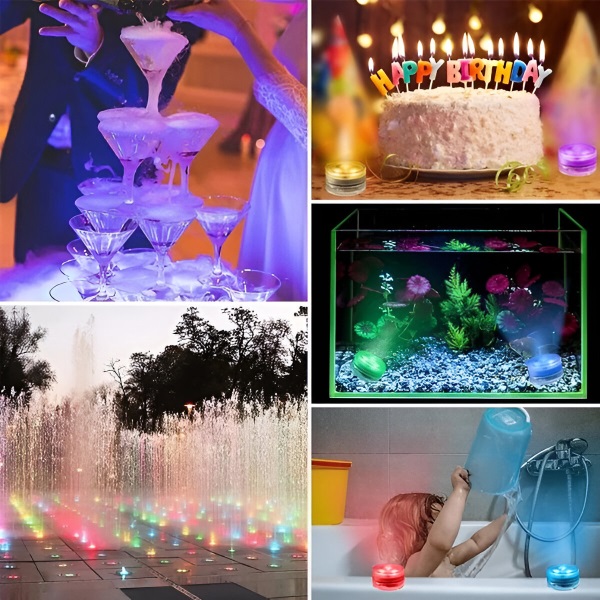 Nessuna spina, nessuna scintilla! Migliorano l’atmosfera di qualsiasi acquario, contenitore d’acqua o secchiello del ghiaccio con facilità. Queste mini luci acquatiche dai colori vivaci abbelliscono con eleganza la piscina, l’acquario, il vaso o qualsiasi altro oggetto d’arredo. Che si tratti di una festa o di una serata tranquilla, queste versatili luci RGB miglioreranno immediatamente l’ambiente circostante.