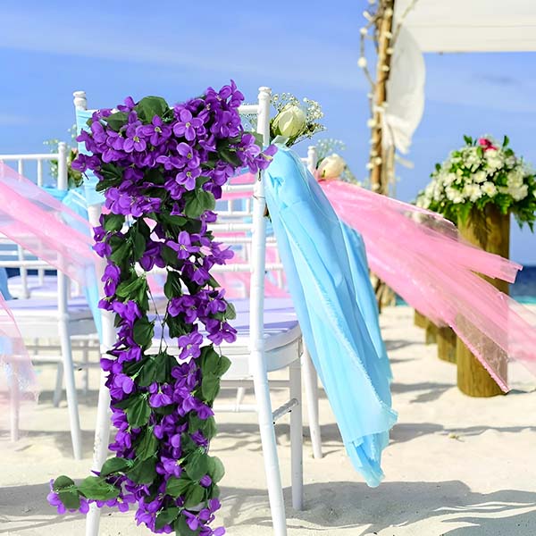 Fiori e foglie di seta su liane di plastica: si muovono naturalmente con la brezza