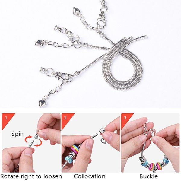 Fate una dichiarazione di moda come nessun’altra! Create braccialetti di vostra scelta che si adattino ai vostri desideri e al vostro stile. Il set FUNBRACE comprende 60 perline e ciondoli di colori diversi e 3 catene per braccialetti con chiusura. Vi dà la libertà di decorare i vostri braccialetti come volete! Doppia offerta! (63+63-FREE)