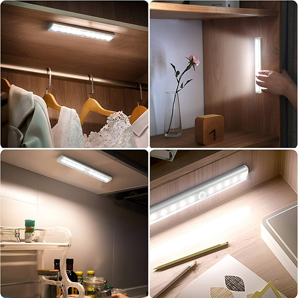 Illuminate tutti gli angoli spenti e bui della vostra casa o dei vostri armadi. LUMICOM è una luce perfetta con supporto adesivo che si può attaccare ovunque senza bisogno di dadi e bulloni. La sua funzione di rilevamento del movimento è più comoda in quanto non è necessario armeggiare per trovare gli interruttori della luce al buio.