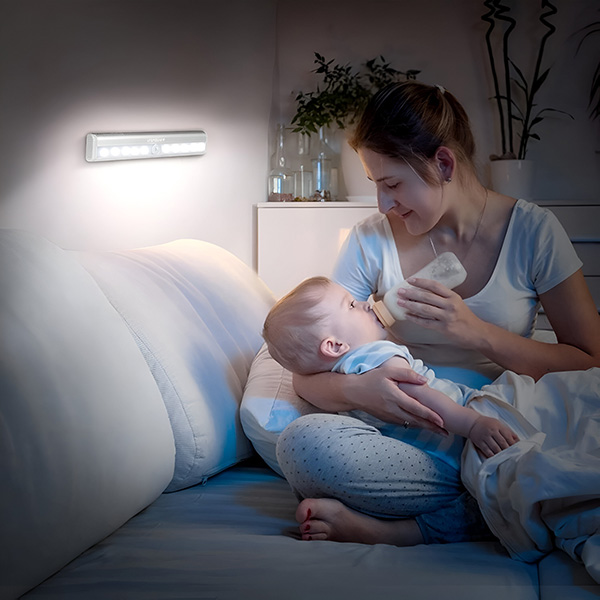 Non inciampate mai più nel buio! Installate questa luce vicino ai piedi del letto, in modo che quando vi svegliate di notte si illumini automaticamente, guidandovi in modo sicuro verso la toilette o la porta.