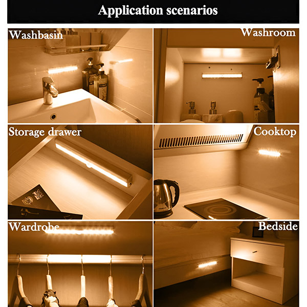 Per facilitare la vestizione, attaccate questa luce all’interno dell’armadio o del guardaroba. Si illumina automaticamente quando si apre l’anta, aiutandovi a trovare i vostri vestiti senza brancolare nel buio.