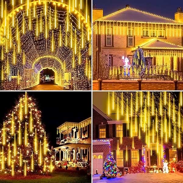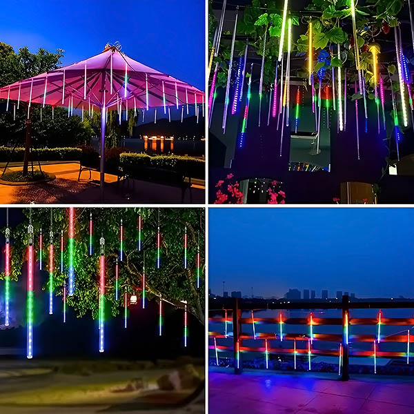 Pioggia di meteoriti Effetto che crea un’atmosfera romantica: Luci a led con effetto pioggia di meteoriti. La luce di ogni lampadina si accende e si spegne in sequenza e rapidamente simulando una pioggia di meteoriti o la neve che cade nel cielo notturno. Per un’atmosfera suggestiva.