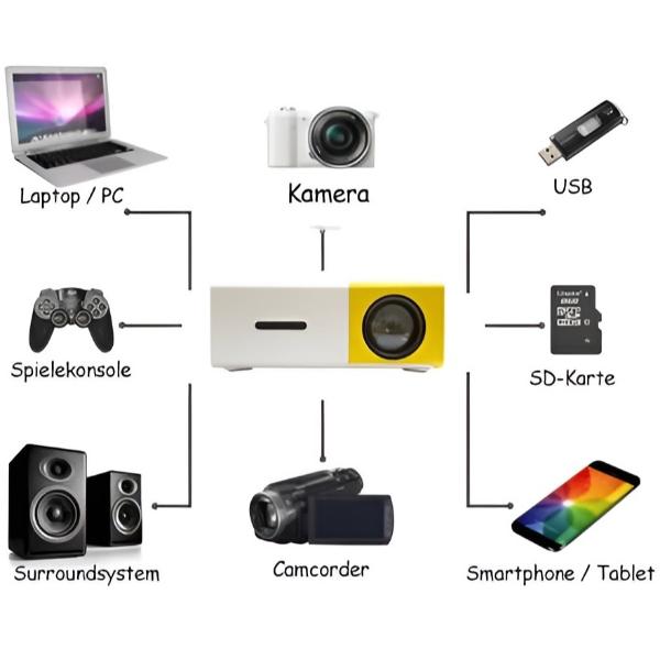 Grazie a porte multiple come USB, HDMI e AV, questo proiettore garantisce il divertimento, indipendentemente dal dispositivo utilizzato.
