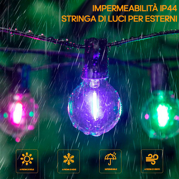 Realizzate con materiali resistenti, queste luci sono progettate per resistere a varie condizioni atmosferiche. Con la pioggia o con il sole, le luci continueranno a brillare.