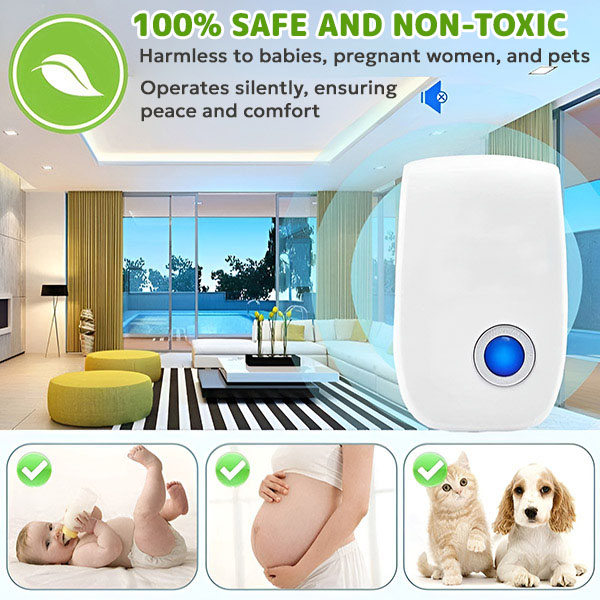La gamma di frequenza 22-65 KHz è completamente impercettibile per umani, cani, gatti e la maggior parte degli animali domestici – agisce solo sul sistema nervoso di roditori, insetti e aracnidi. Nessun residuo tossico sulle superfici, nessun fumo nell’aria, nessun rischio per i bambini che gattonano sul pavimento. Accendilo, lascialo in funzione 24/7 e la protezione sarà continua senza alcuna manutenzione.