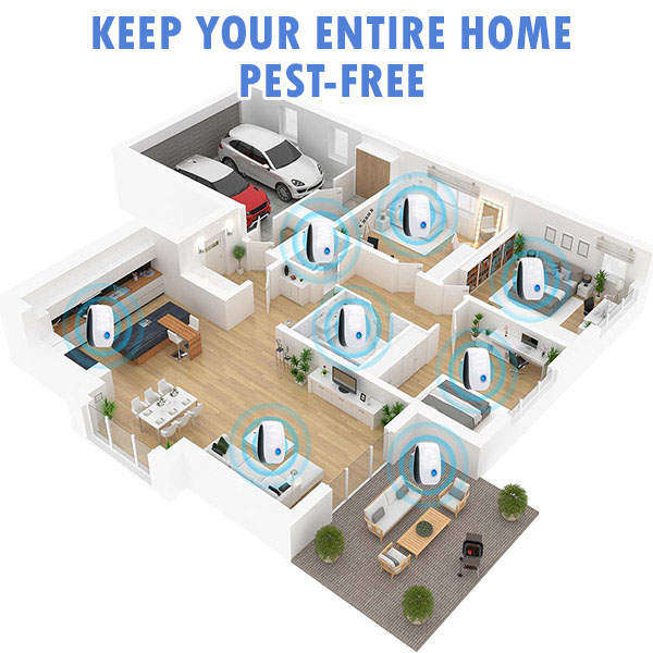 Repellente ultrasonico per parassiti – 100m², 22-65 KHz, sicuro per animali domestici | BUGBUSTER