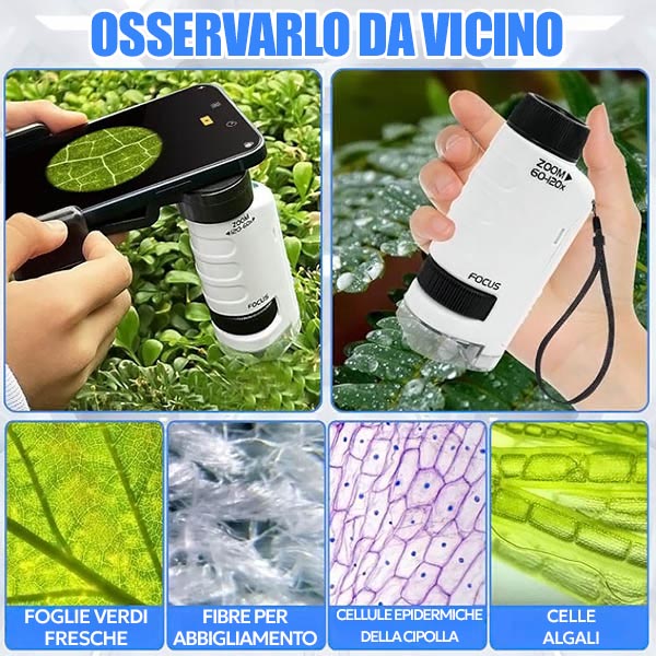 Questo microscopio portatile sviluppa le capacità di osservazione, concentrazione e risoluzione dei problemi. Trasforma l’apprendimento in divertimento, rendendolo un regalo divertente ed educativo che alimenta la curiosità .