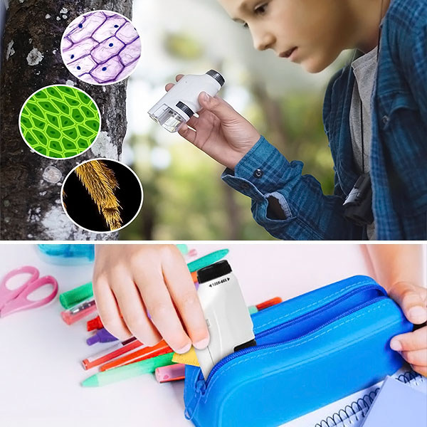 Dotato di illuminazione a LED e di ingrandimento 60x-120x, i bambini possono scoprire l’affascinante mondo microscopico di giorno e di notte. Le immagini chiare e nitide li terranno impegnati e desiderosi di saperne di più.