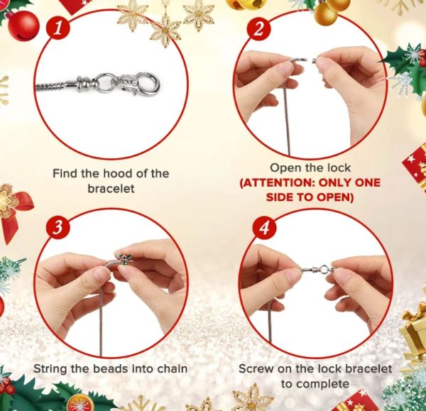• Un calendario dell’Avvento natalizio che include 22 ciondoli e 2 braccialetti per creare due affascinanti braccialetti.
