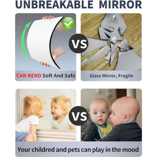 Realizzato in polistirene, questo specchio è sicuro, flessibile e non si romperà se cade.