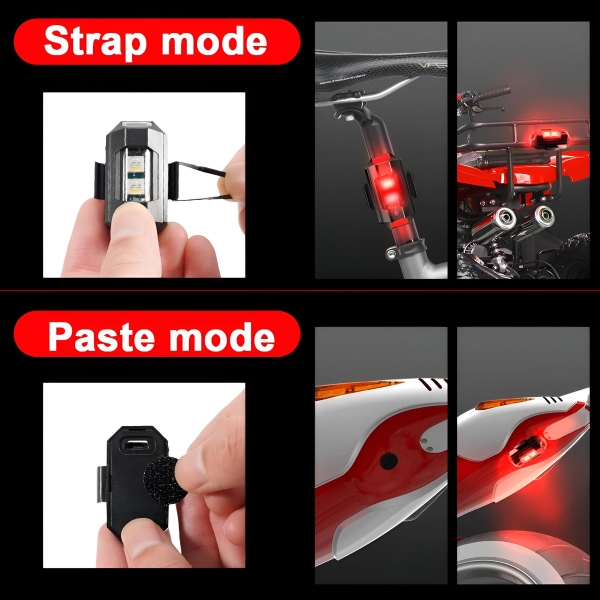 Queste luci sono incredibilmente versatili e progettate per adattarsi ad auto, moto, biciclette e droni. È possibile scegliere tra i metodi di installazione con velcro o con anello di gomma per un’installazione semplice e sicura. Non c’è bisogno di strumenti complicati o di un aiuto professionale.