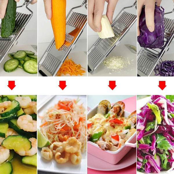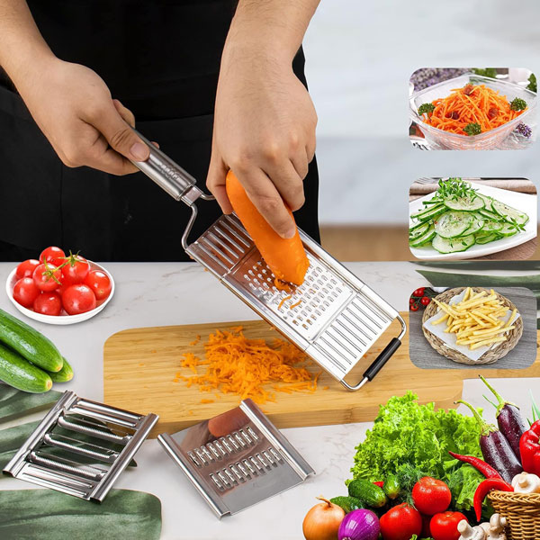 🧑🍳 Design multifunzionale: Affetta, grattugia e trita con un solo strumento—perfetto per insalate, patatine fritte e pasti veloci.